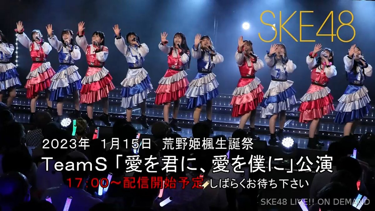 本日17時〜は、チームS「#愛を君に愛を僕に」公演 #荒野姫楓生誕祭2023 をお送りします。