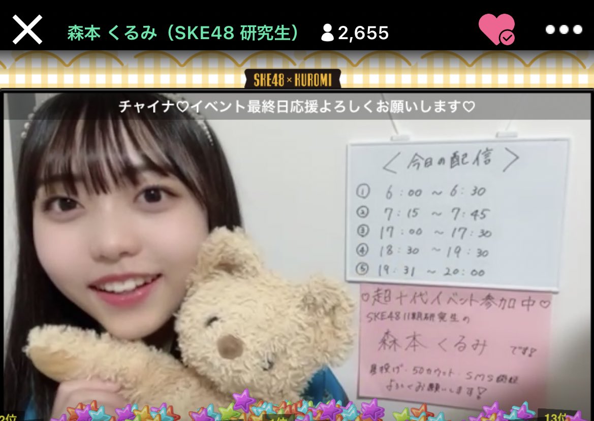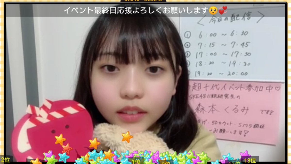 | 1🥇 | 森本 くるみ(SKE48 研究生) | 13222173 | +7098997 | |