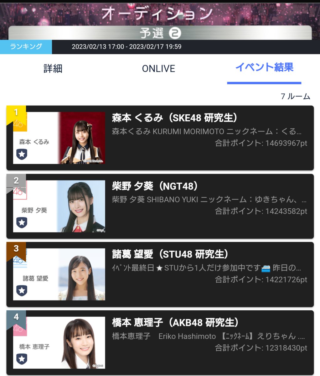 SHOWROOM×超十代イベント予選②1位