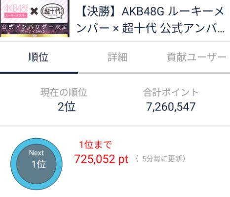| 1🥇 | 原 優寧(SKE48 研究生) | 8945719 | +1480735 | |
