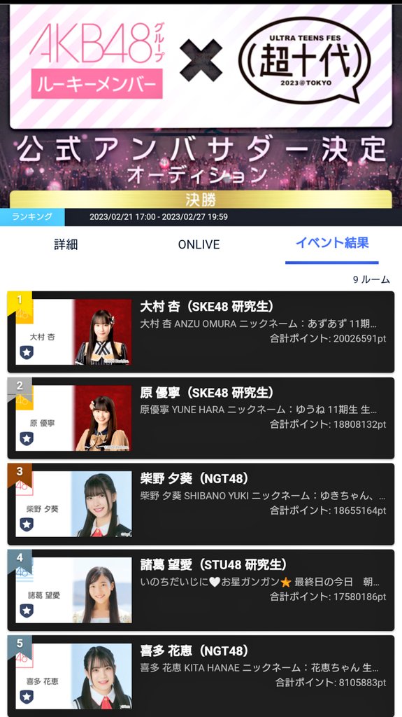 2023/2/21(火) 17:00 〜 2023/2/27(月)19:59※ランキングの最終確定はイベント終了翌日の正午頃となります。