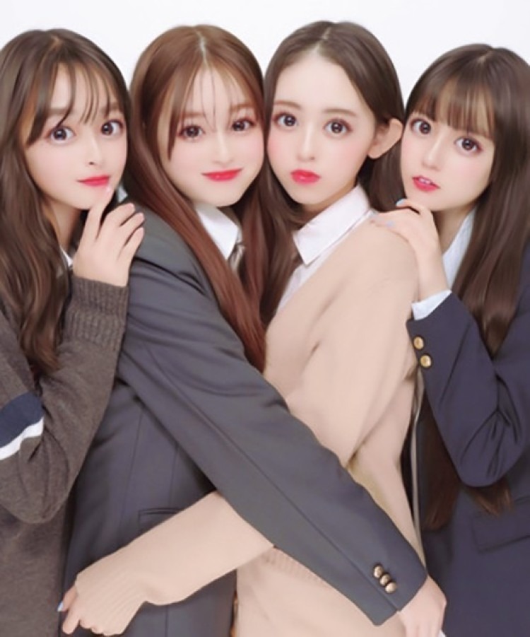 右の2人は右手で、左の2人は左手で小顔ポーズをするのがこだわりポイント。統一感があったほうが良く見える◎