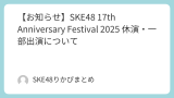 公式サイトスケジュール更新通知Bot)https://twitter.com/SKE48rkpmtm公式サイトのスケジュール更新があった場合に通知する(休止中)