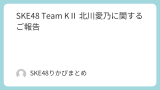 いつもSKE48を応援していただき誠にありがとうございます。Team S 北川愛乃に関してご報告させていただきます。足の怪我により劇場公演の一部休演など療養を続けておりましたが、医師、本人と相談の上、回復に専念するため、パフォーマンスを伴う...