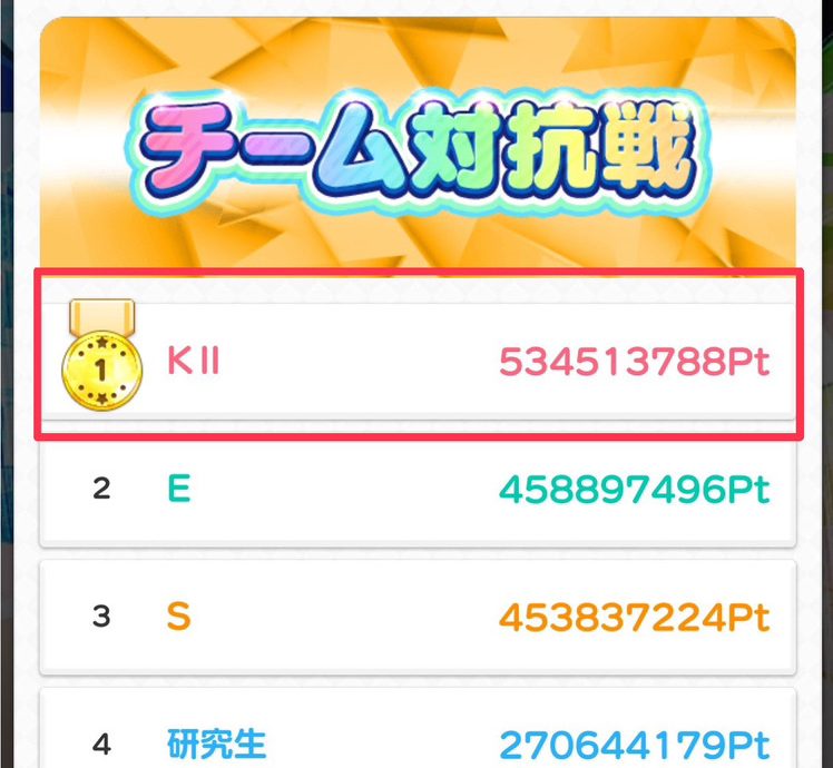 【第64回推しメンイベント】の推しメンPTをチームごとに集計しチームのメンバー数で割った平均値を競うイベントです。