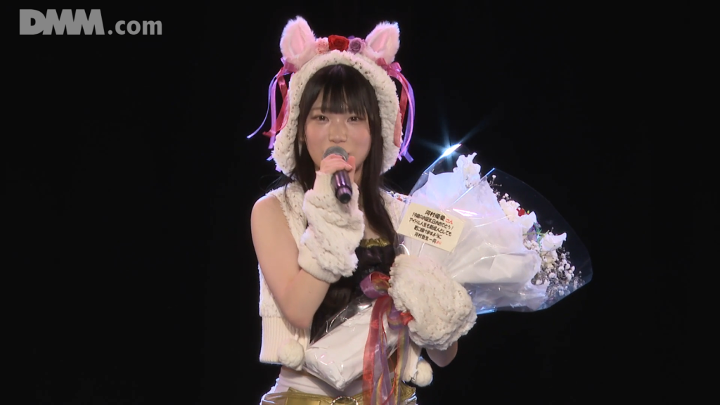 そして、そんな私の夢は、選抜に入らせていただいたからにはこれからも選抜を継続できるように、そのためには皆様のお力も必要ですし、私自身の頑張りも必要ですので、みなさんついてきてくださると嬉しいです。これからも河村優愛を自慢の推しメンって思ってください。本日は本当にありがとうございました。