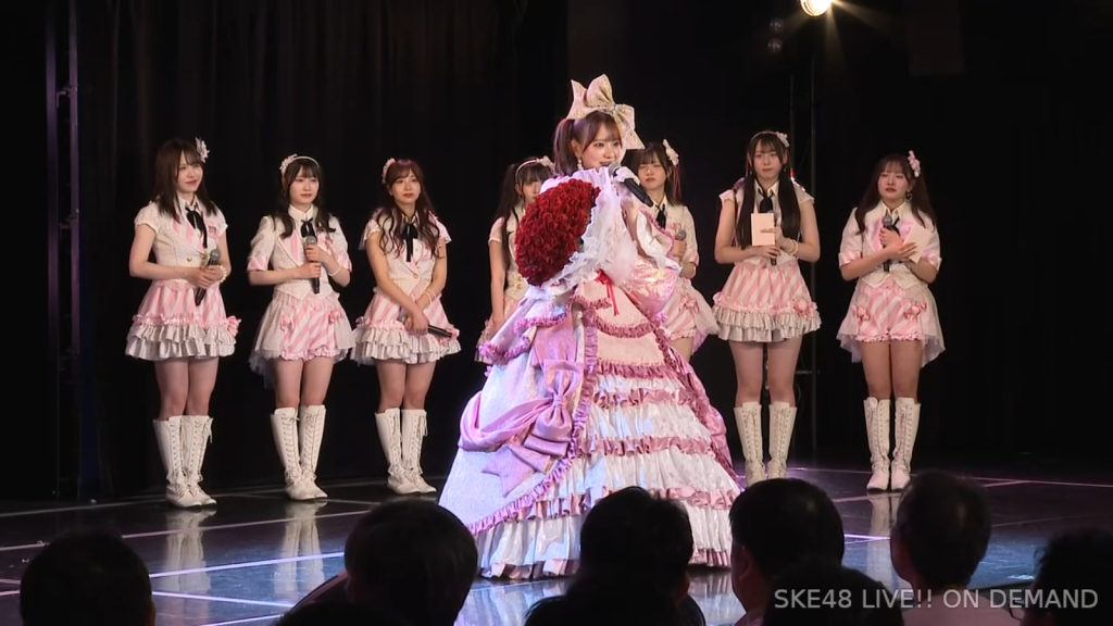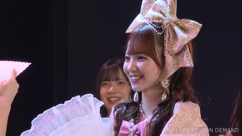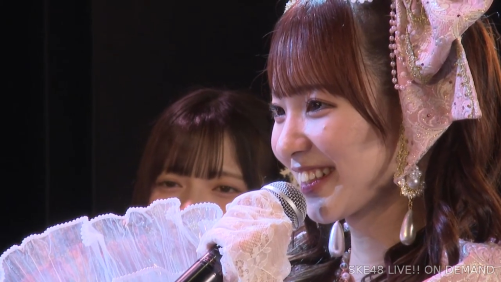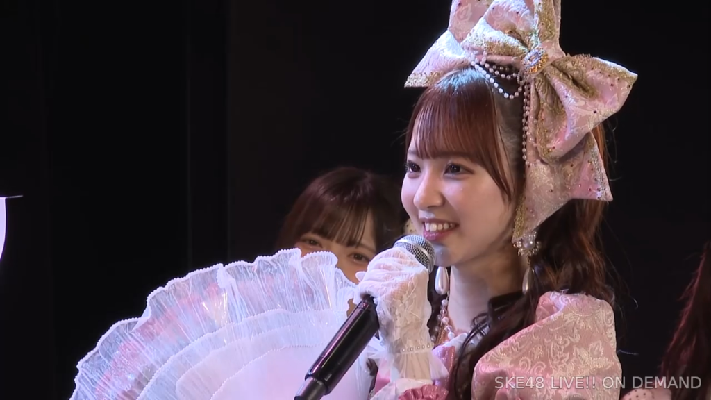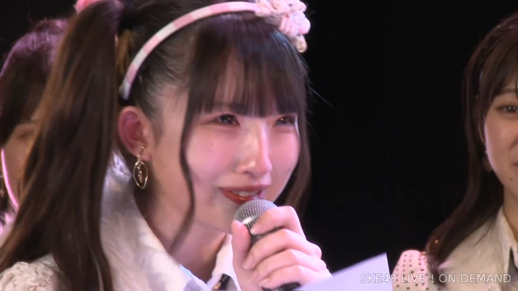 そうですね、こうSKE48にいて、さっきのお手紙にもあったんですけれど、「見てくれてる人がいる」ということと「努力は報われるんだ」っていうことを、このSKE48で身をもって感じることができました。私は本当にきれいごとじゃなくて、ファンの皆さんのことが本当に大好きなので、ずっとずっと皆さんも私のことを好きでいてくださったら嬉しいですし、これからもファンの皆さん、そしてメンバーのみんなの幸せを一番願っているので、つらいなって思うことがあったらいつでもご飯に行きたいし、LINEしてくれたら夜中でも対応するし、これからもずっとSKE48でみんな頑張っていくんだなと思うと、ファンの皆さんと同じように応援しているので、みんなも楽しく幸せに頑張っていてほしいですし、ファンの方も一人残らずみんな長生きして幸せでいてほしいなと思っているので、皆さんの私が卒業しても明るく笑顔の多い人生を送ってくださると嬉しいなと思います。皆さん10年間本当にありがとうございました。