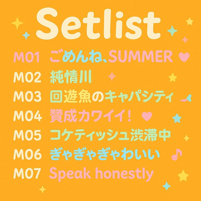 セットリスト 名古屋・DIAMOND HALL 2部 20:40~