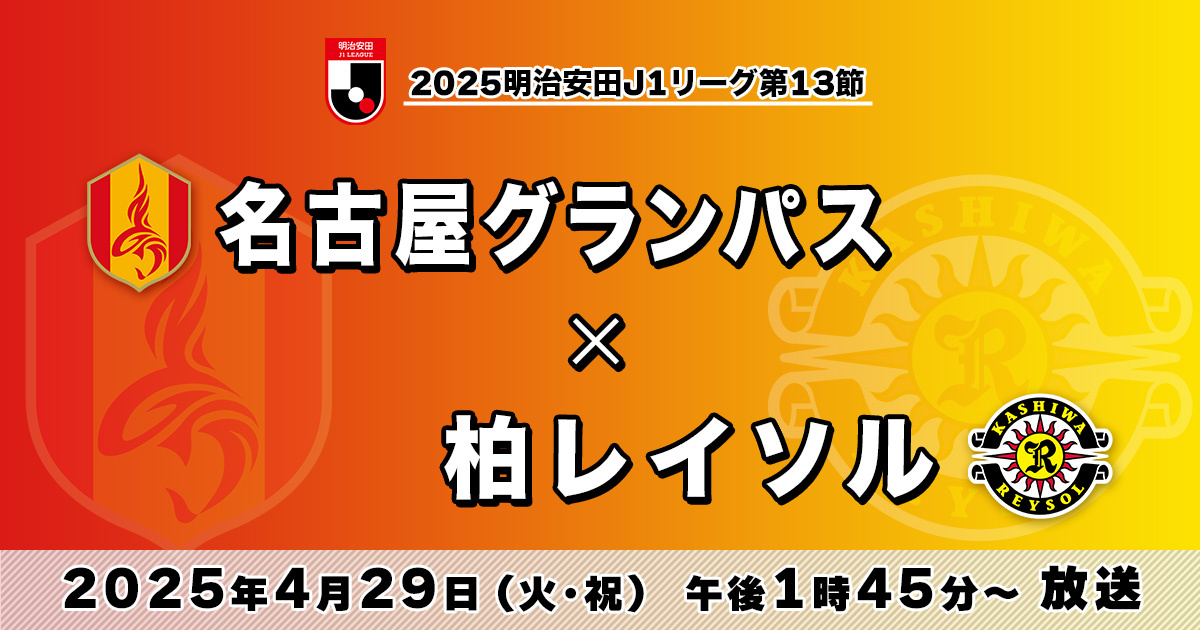 2025明治安田J1リーグ第13節 【名古屋グランパス vs 柏レイソル】 4月29日(火)午後1時45分~ - 名古屋テレビ【メ~テレ】