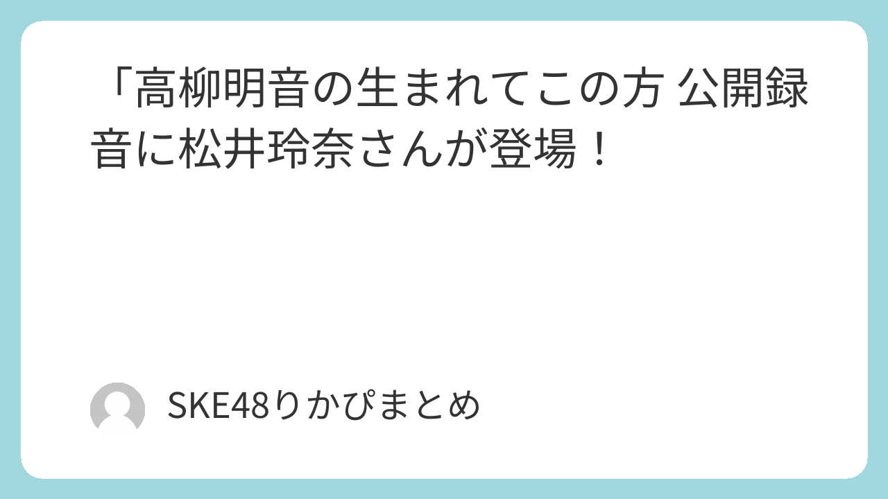 - 「高柳明音の生まれてこの方」公開収録🎧