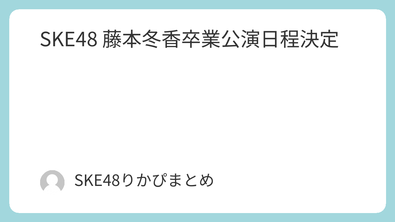 藤本冬香卒業公演日程のお知らせいつもSKE48へのご声援、誠に有難うございます。藤本冬香の卒業公演日程が決まりましたのでお知らせ致します。■9月28日(日)チームKⅡ「シアターの女神」藤本冬香卒業公演<17:00開演>メンバー:荒野姫楓・池田楓・伊藤実希・井上瑠夏・奥野...