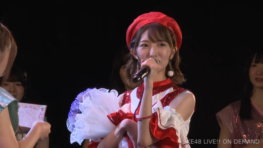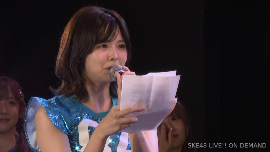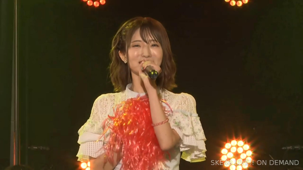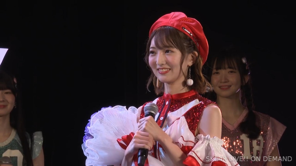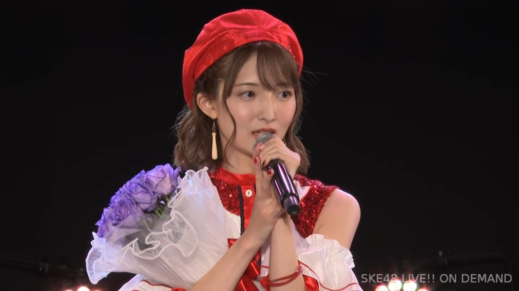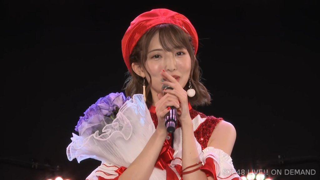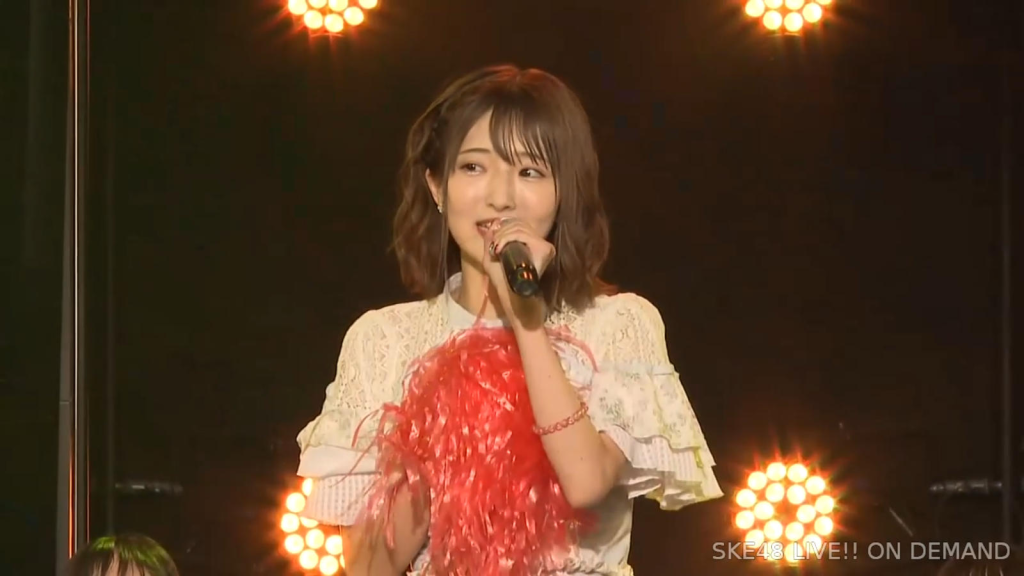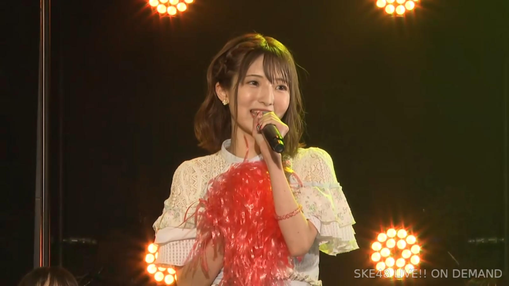 私は環境が変わるのがすごく苦手なタイプなので、広島から出てきて一人でやっていけるかなと思ったんですけど、もう公私ともにすごく良くしていただいて、本当に楽しくて、愛知、名古屋は第二の故郷だなという風に思います。本当にSKEで良かったなって思います。本当にありがとうございます。