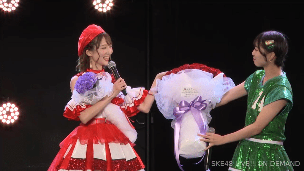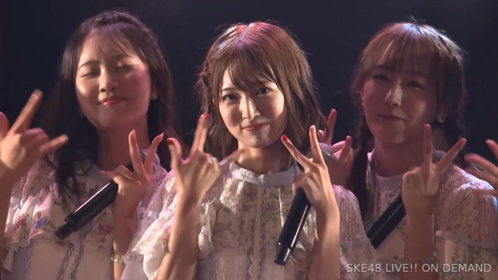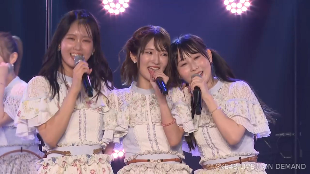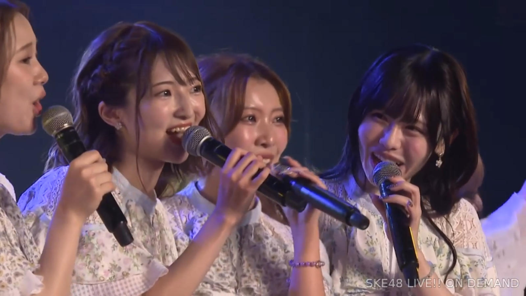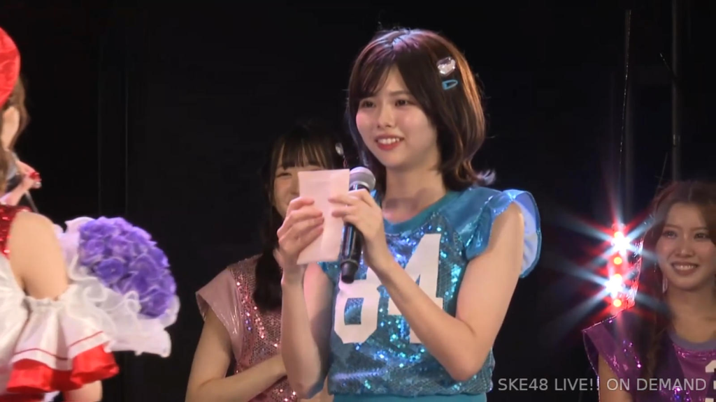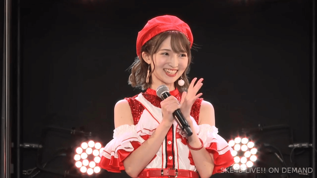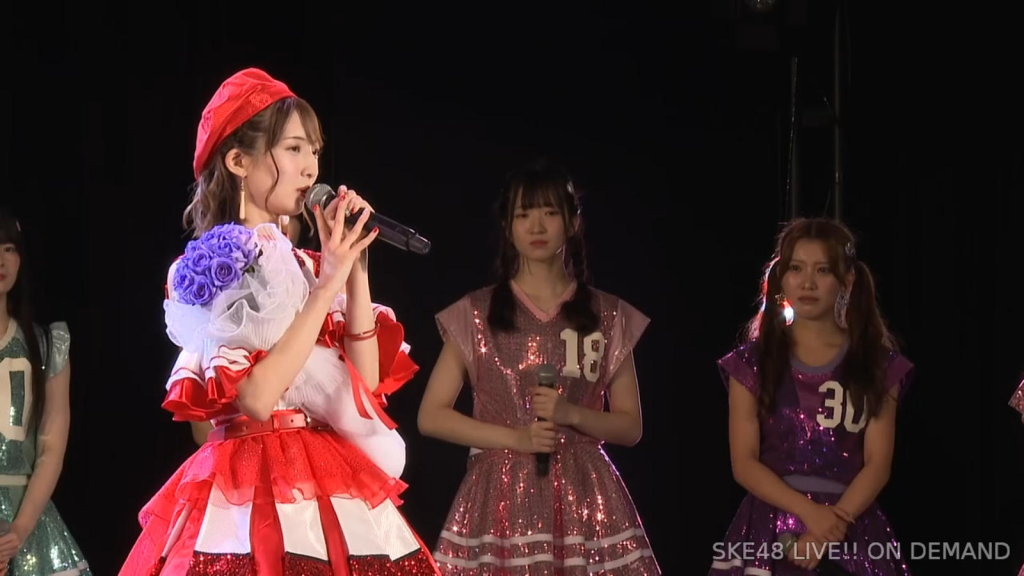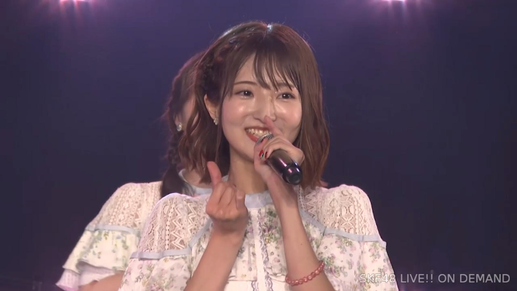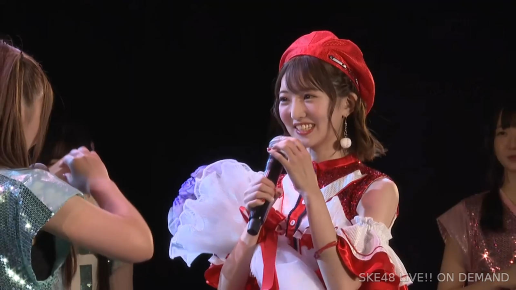 私は環境が変わるのがすごく苦手なタイプなので、広島から出てきて一人でやっていけるかなと思ったんですけど、もう公私ともにすごく良くしていただいて、本当に楽しくて、愛知、名古屋は第二の故郷だなという風に思います。本当にSKEで良かったなって思います。本当にありがとうございます。