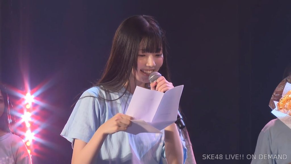 だからこそ、この18歳という一年をSKE48で過ごせるからこそ、もっともっと一生懸命努力して、ダンスだったり、いろんなところでスキルを磨いてもっともっと成長できるように、これからも一生懸命頑張っていきたいと思います。