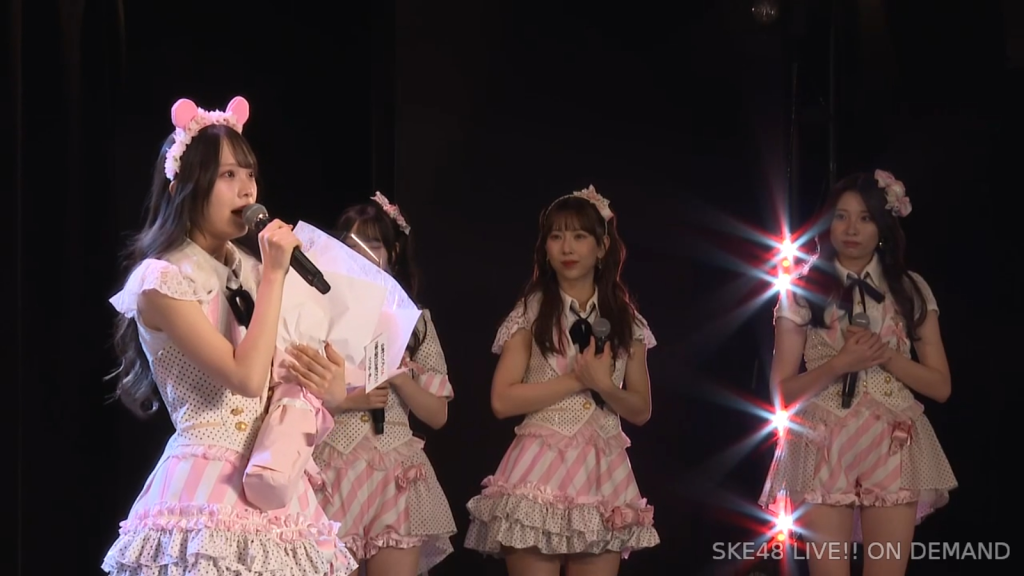 チームSの新公演が発表されたんですけど、それをめっちゃ頑張りたいなって思ってます。 さくは本当にこの相川チームSが大好きで、その大好きなみんなと一緒に素敵な公演を作りたいなって、発表された時からすごい思ってました。 今度こそは、初日のメンバーに選んでもらえるように、パフォーマンスの向上に努めたいと思います。