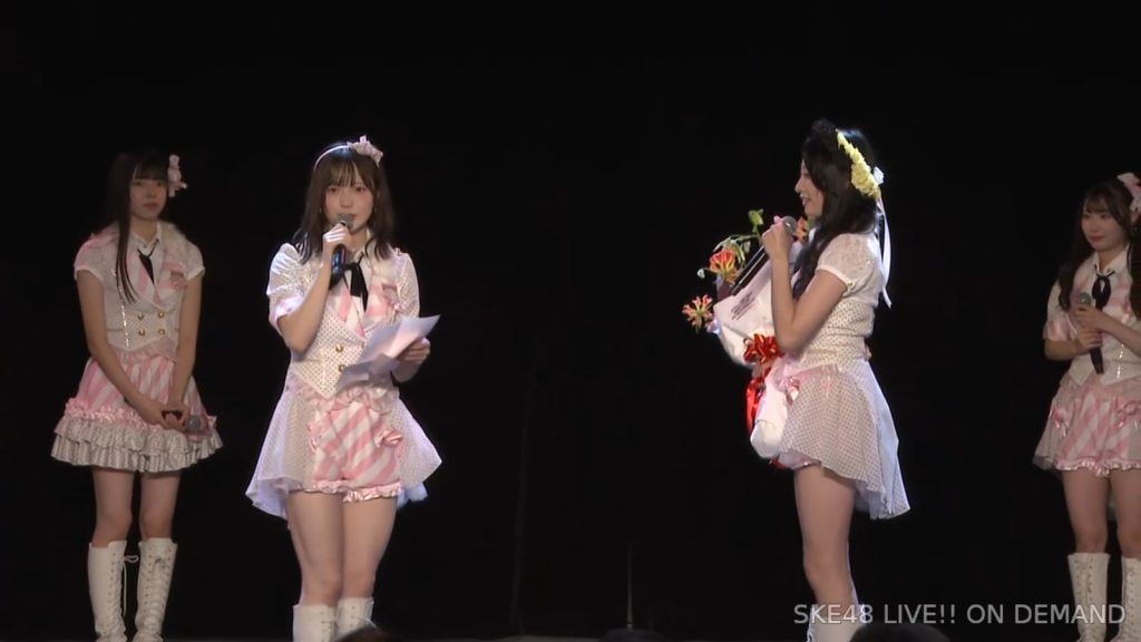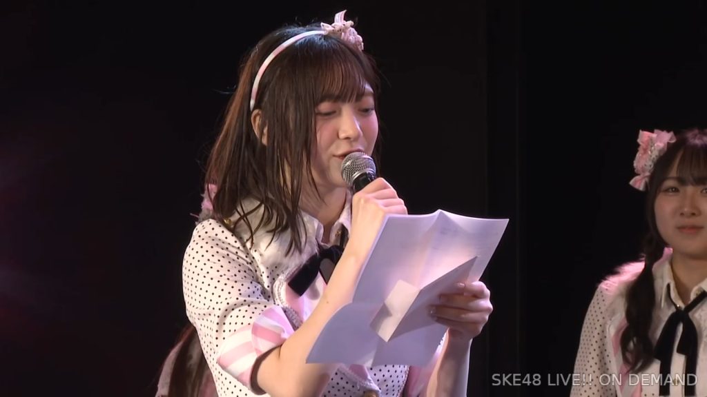 皆さんと一緒に、これからもいろんな夢に向かって頑張りたいなと思いますので、これからもチームSはじめ、SKE48の応援よろしくお願いします。