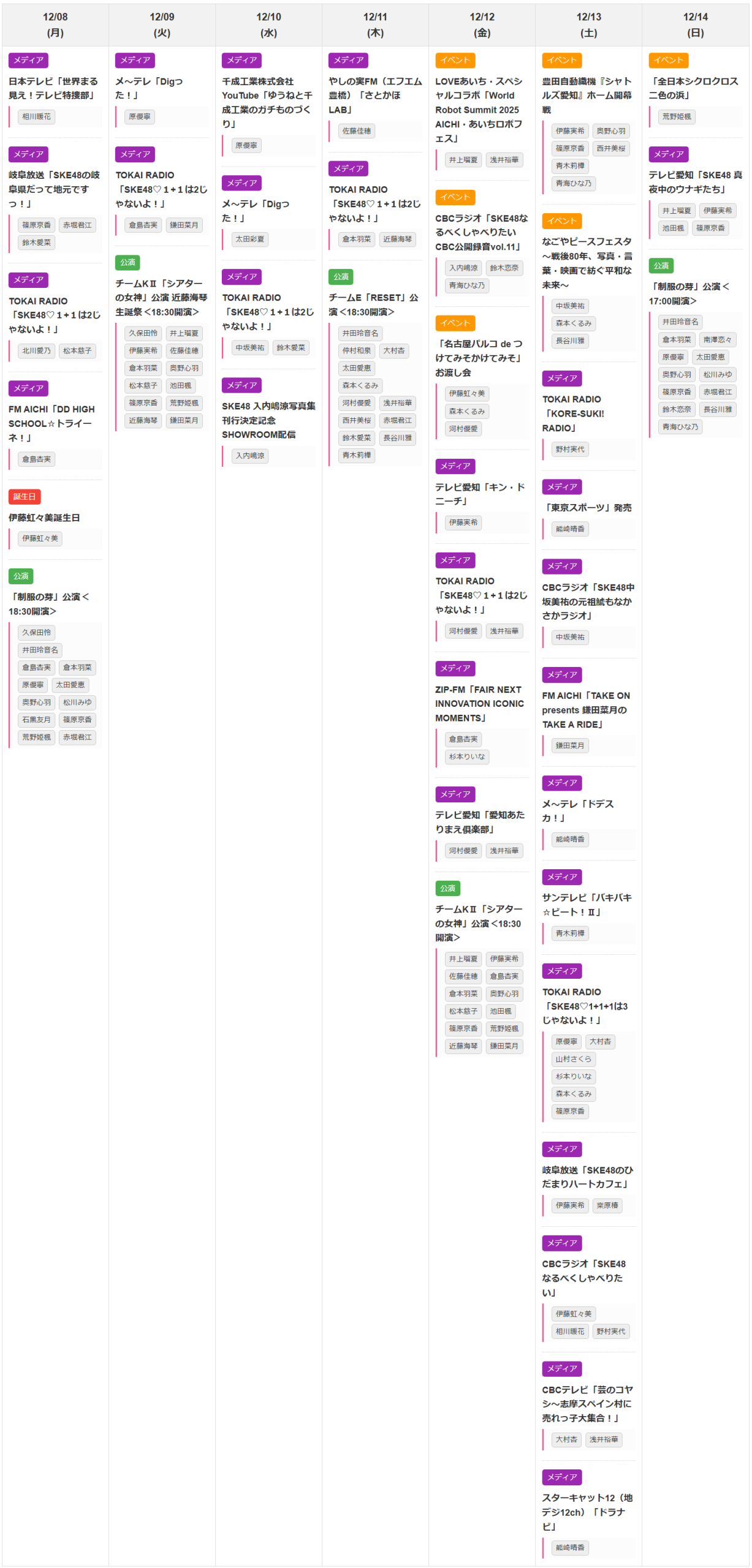 ⭐️ SKE48 週間重要イベントリスト (12/08〜12/14)