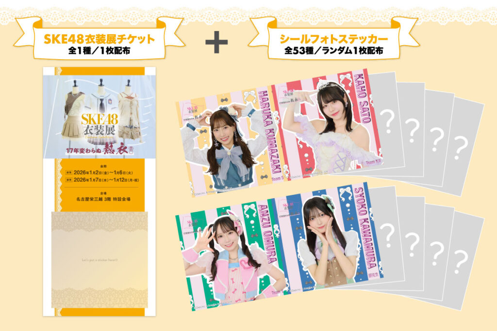 『SKE48衣装展 17年変わらぬ熱衣』2026年1月2日(金)~12日(月・祝)「名古屋栄三越」で開催!【チケット情報とグッズリスト公開】 | S Cawaii!(エスカワイイ)