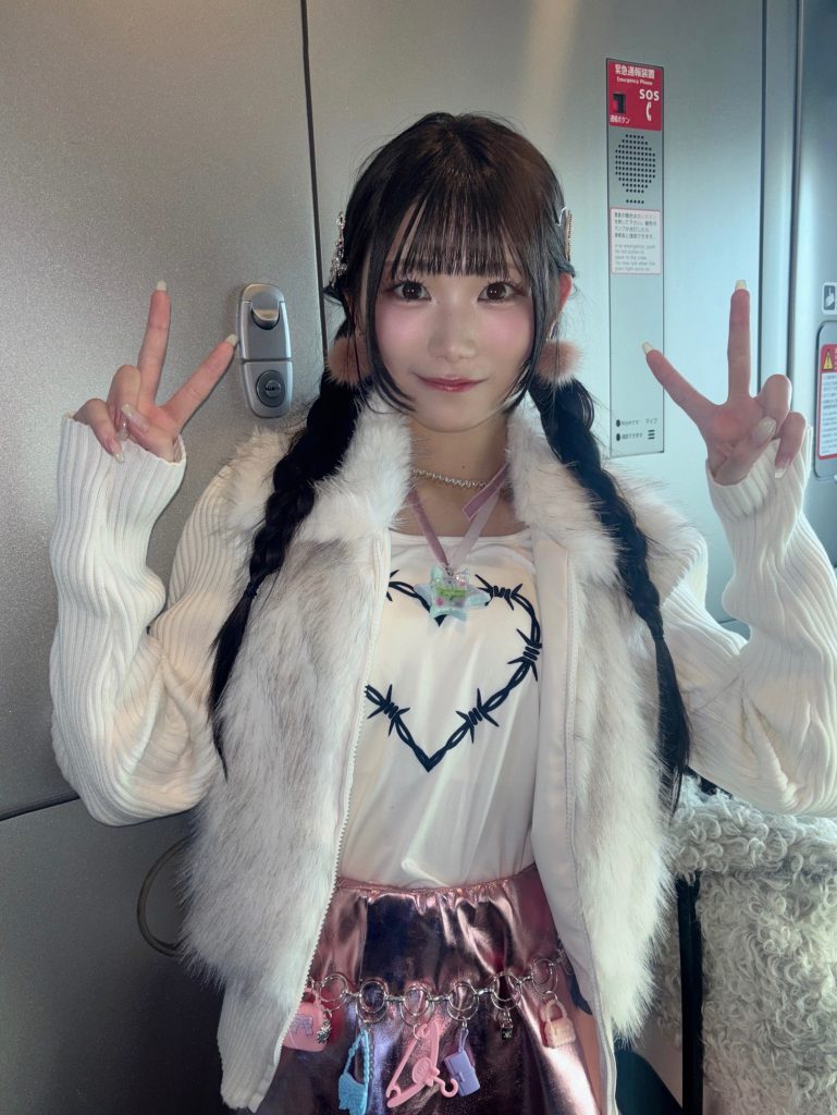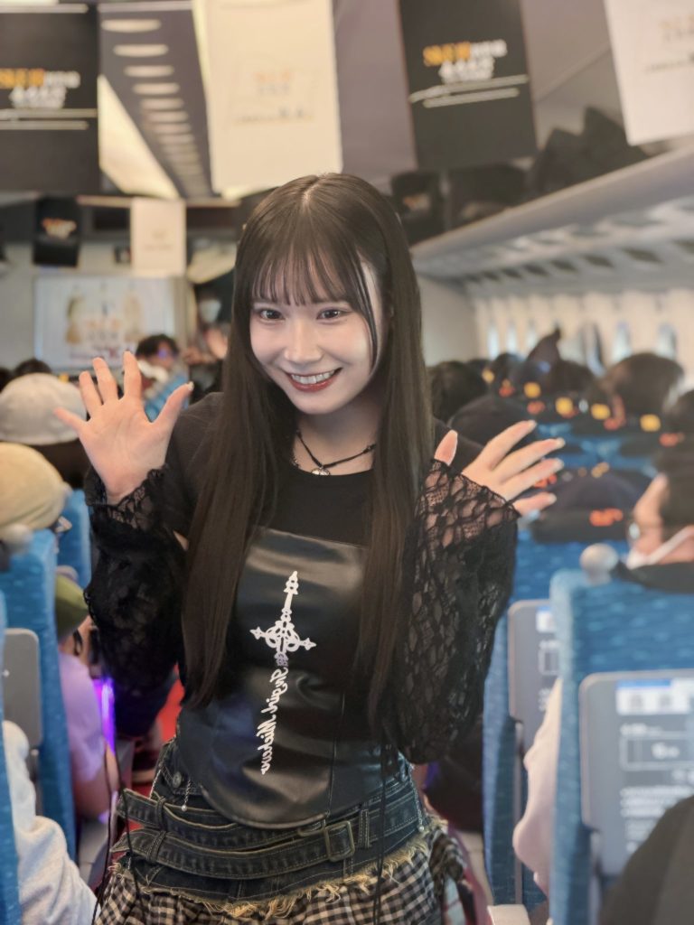 2部は、一転して「甘口」のピンクコーデ。いちごミルクのような優しくも鮮やかなピンクが、車内の照明に映えて、お二人の可愛さをさらに引き立てていました。1部のクールな表情とは打って変わり、弾けるような笑顔で通路を歩く姿は、まさに天使。あまりの多幸感に、車内全体がふわっと柔らかい空気に包まれていくのが分かりました。