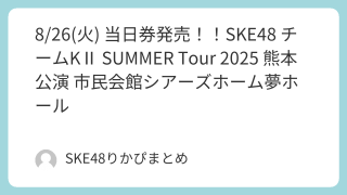 SNS 8/26(火) 当日券発売!!SKE48 チームKⅡ SUMMER Tour 2025 熊本公演 市民会館シアーズホーム夢ホール