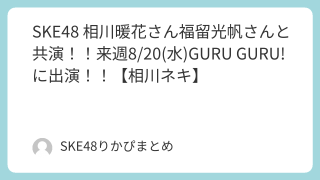 SNS SKE48 相川暖花さん福留光帆さんと共演!!来週8/20(水)GURU GURU!に出演!!【相川ネキ】