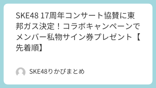 SNS SKE48 17周年コンサート協賛に東邦ガス決定!コラボキャンペーンでメンバー私物サイン券プレゼント【先着順】
