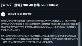 未分類 10.08 20:00 SKE48メンバー登場!! AWA「SKE48特集 on LOUNGE」開催